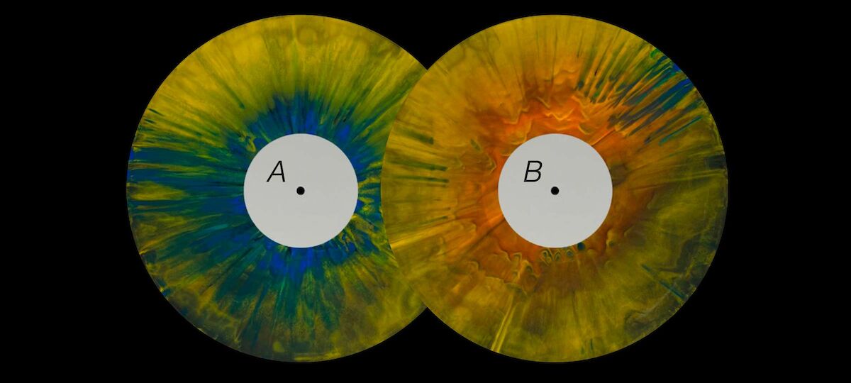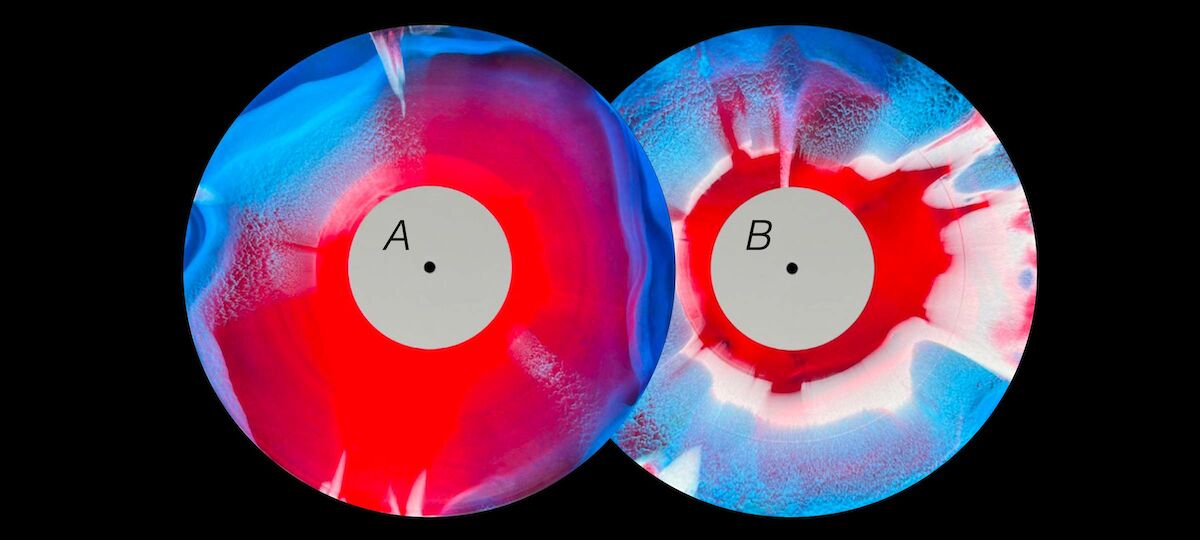 Marbled records consist of two or more colours being mixed together before they are melted and pressed. The intensity of the effect depends on the contrast and the ratio between the mixed colours. The higher the contrast, the more visible becomes the effect.